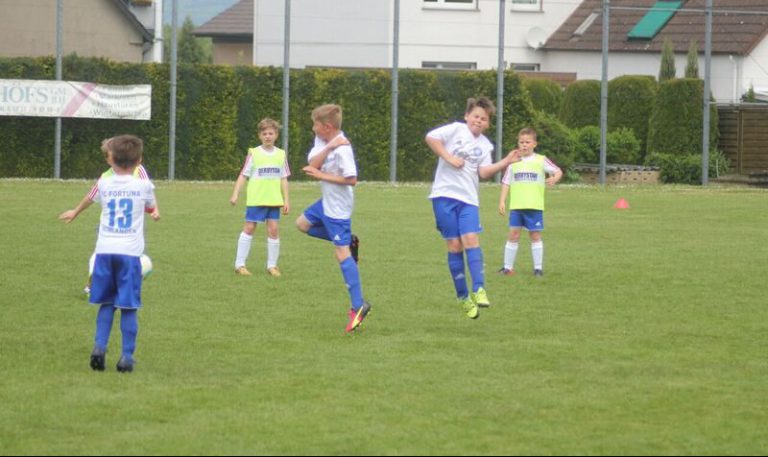 Am Samstag den 21.5.2016 reiste die F1 Jugend zum nächsten Meisterschaftsspiel zur SpVg Hagen – Hardissen. Mit dünner Personaldecke spielten die ungeschlagenen Fortunen auf dem holperigen Rasenplatz in Hagen nervös auf. In der 4. Spielminute haben sich die Schlänger dann durch tolles Pressing und schnellem Umschaltspiel mit dem 0:1 belohnt.Leider hielt die Freude nur kurz an und die SpVg konnte in der 6. Spielminute ausgleichen zum 1:1 und in der 9. Spielminute sogar das 2:1 nachlegen. An diese Situation mussten sich die Schlänger erst einmal gewöhnen denn einen Rückstand hatten die Schützlinge von Manfred Lindau und Sven Schlüter schon lange nicht mehr gehabt. Es brauchte fast zehn Minuten um das Spiel wieder zu drehen und so gingen die Fortunen verdient mit einer knappen 2:3 Führung in die Halbzeitpause.