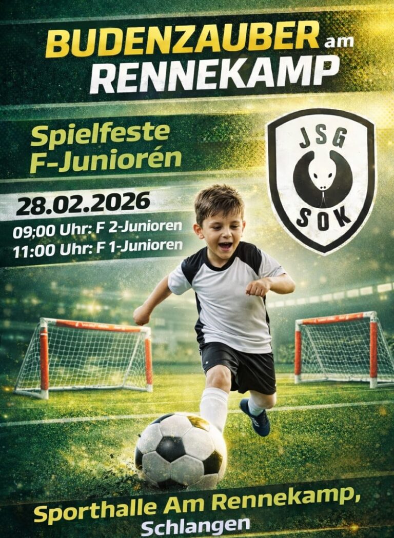 Samstag, 28, Februar, ab 9 Uhr: F-Jugendturniere, Sporthalle am Rennekamp Schlangen